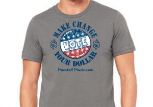 Make Change – Vote Your Dollar Tee-Shirt Leave a Comment / By Mardell Music / February 8, 2020 image of a Tee Shirt with the Make Change Vote Your Dollar slogan